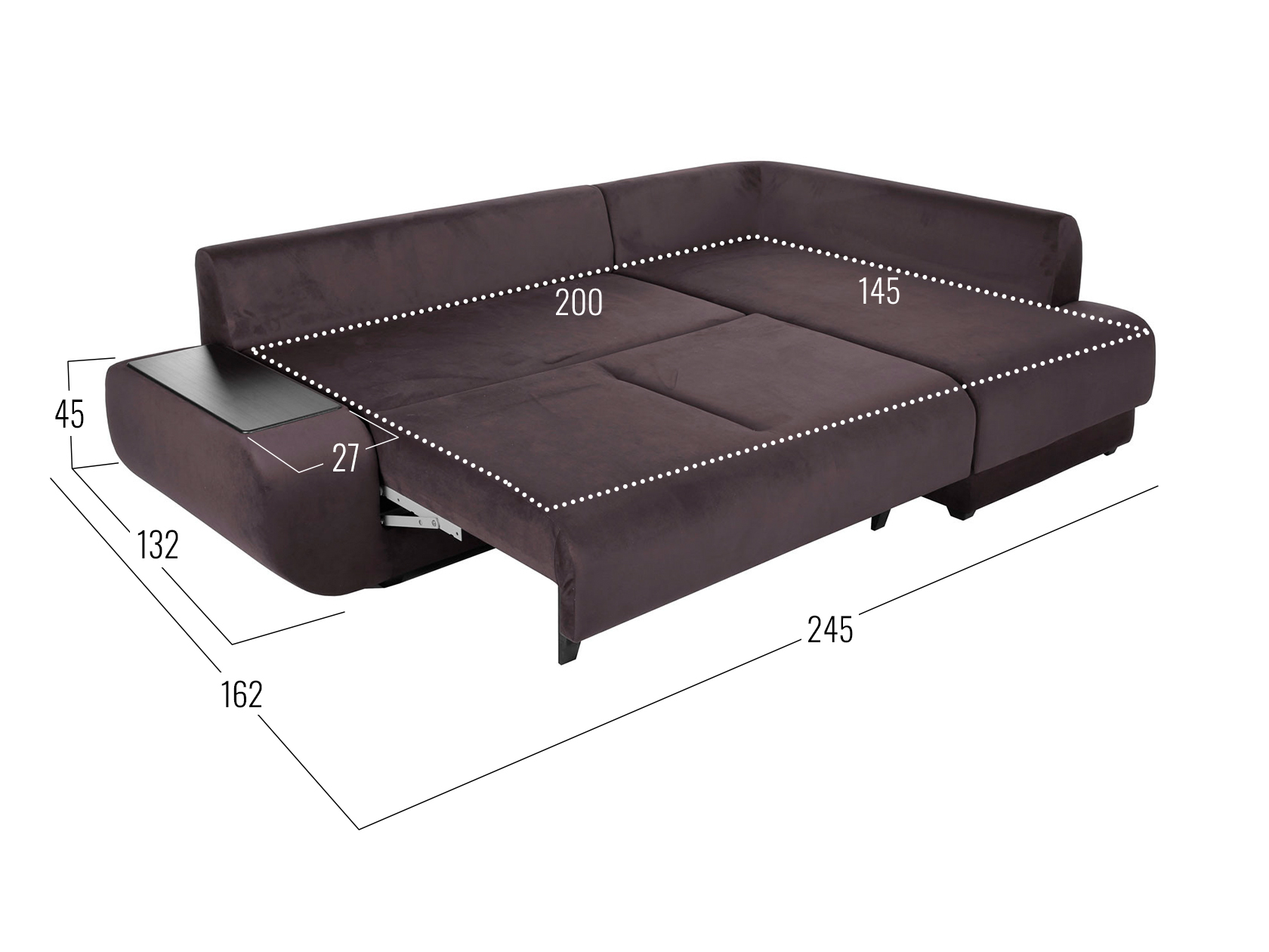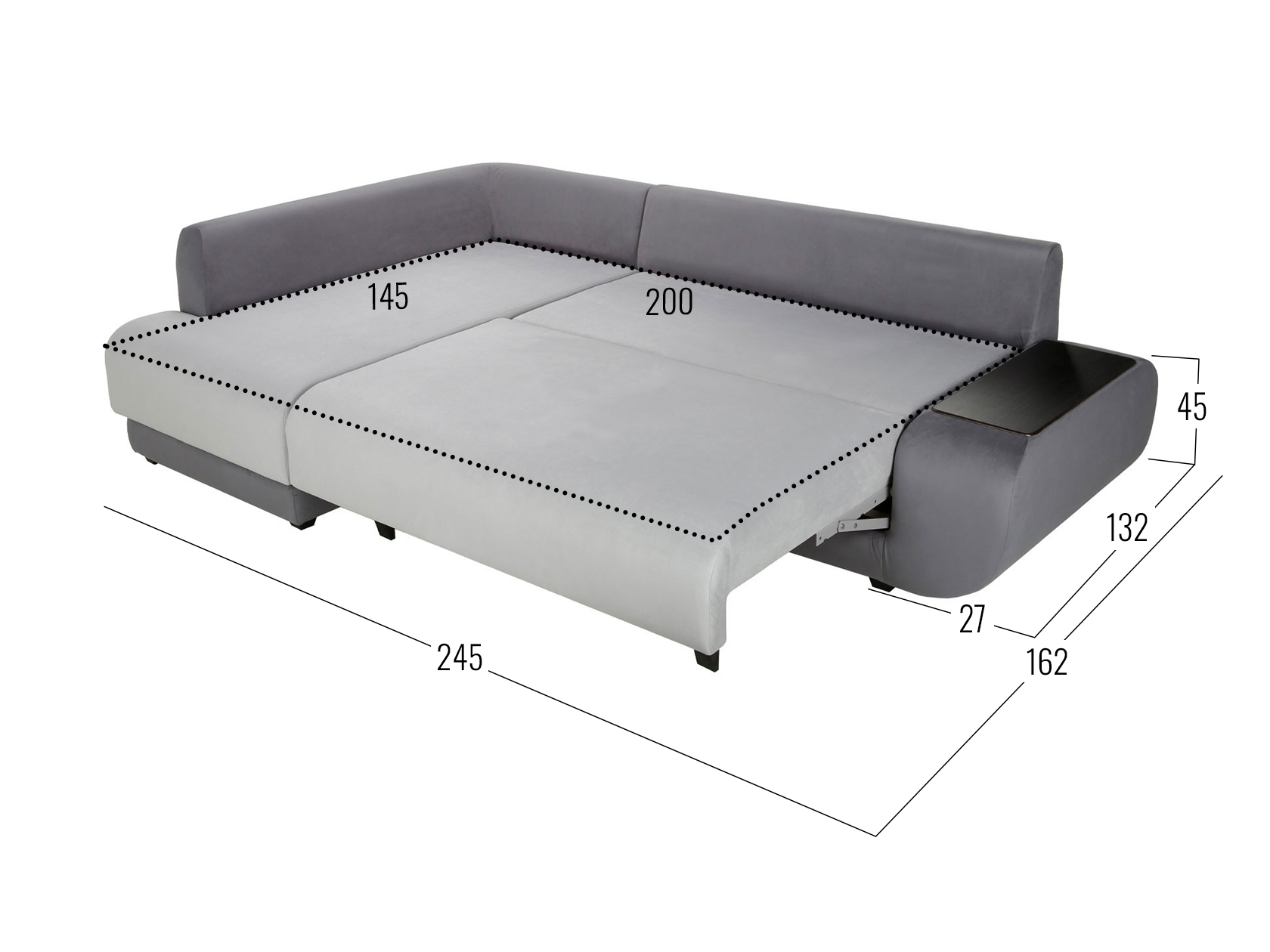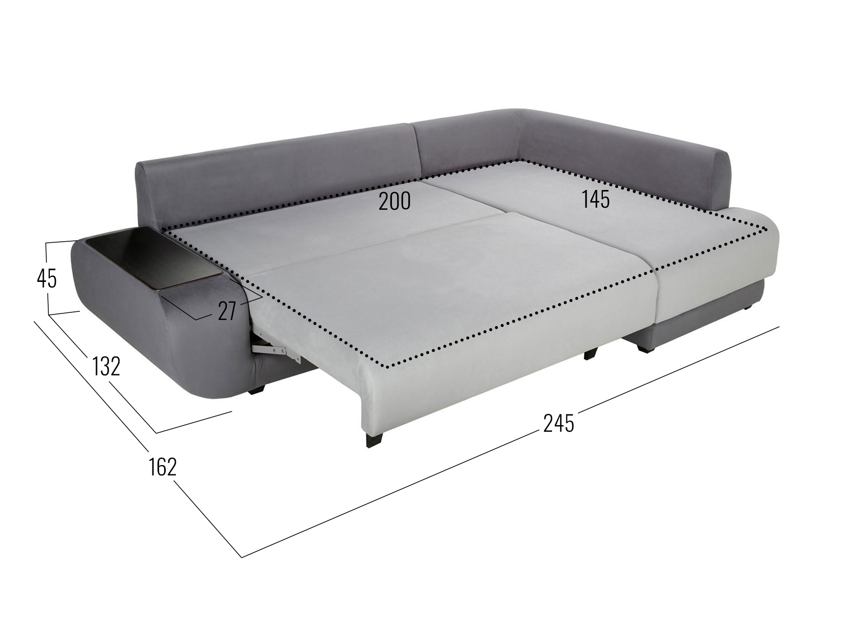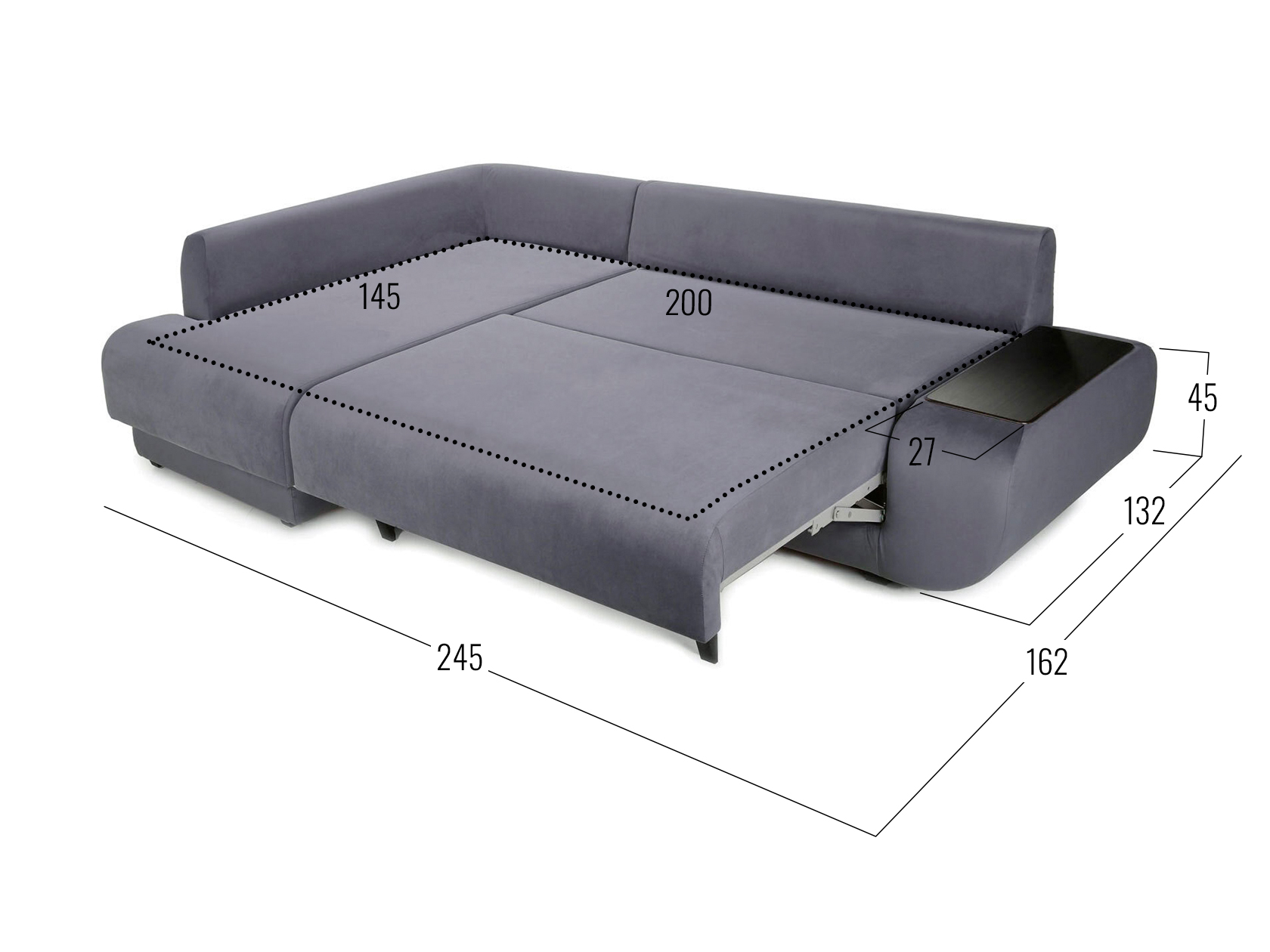 Размер ниши в подлокотнике (ВхШхГ): 21 х 58 х 20 см.
