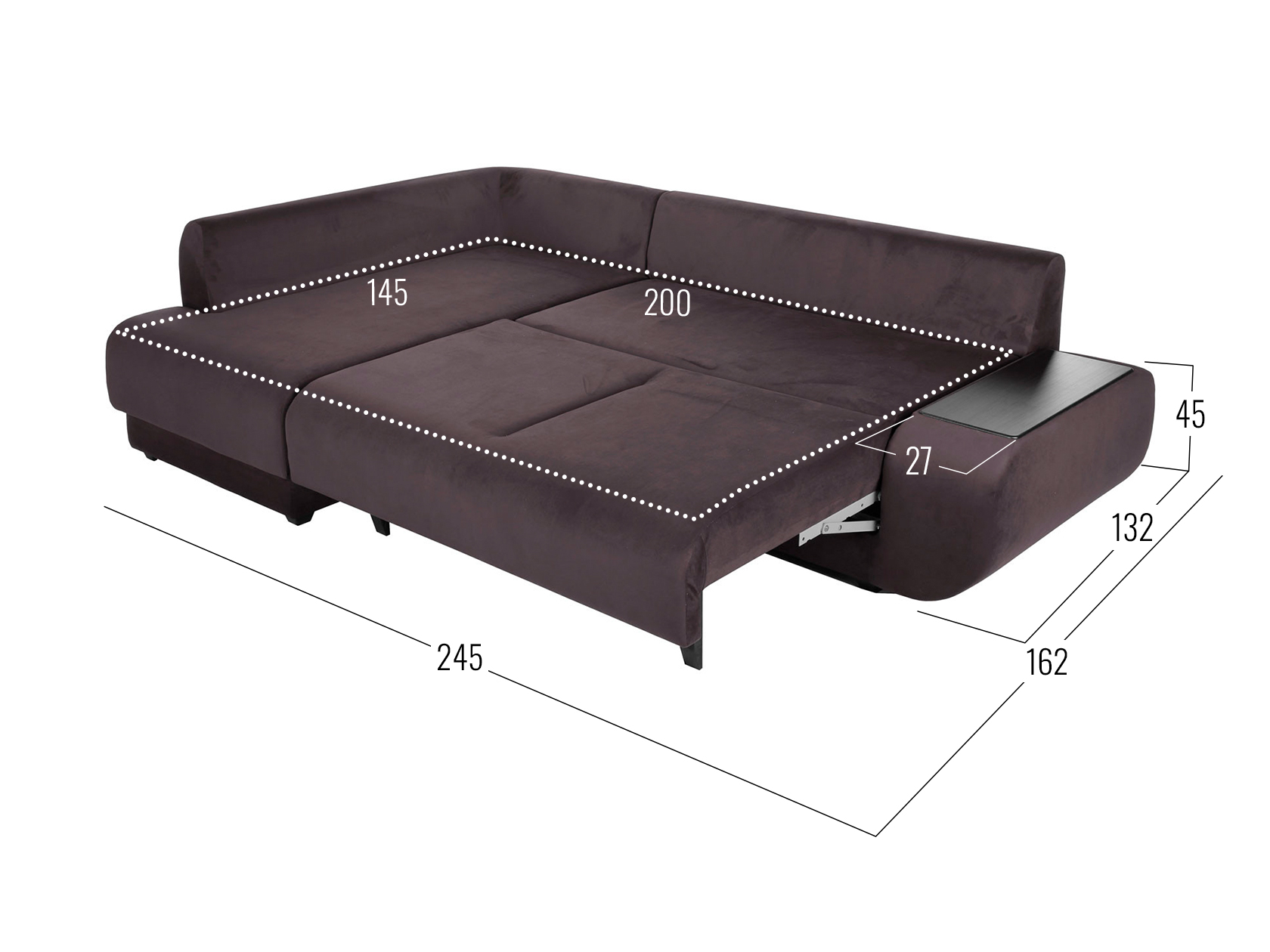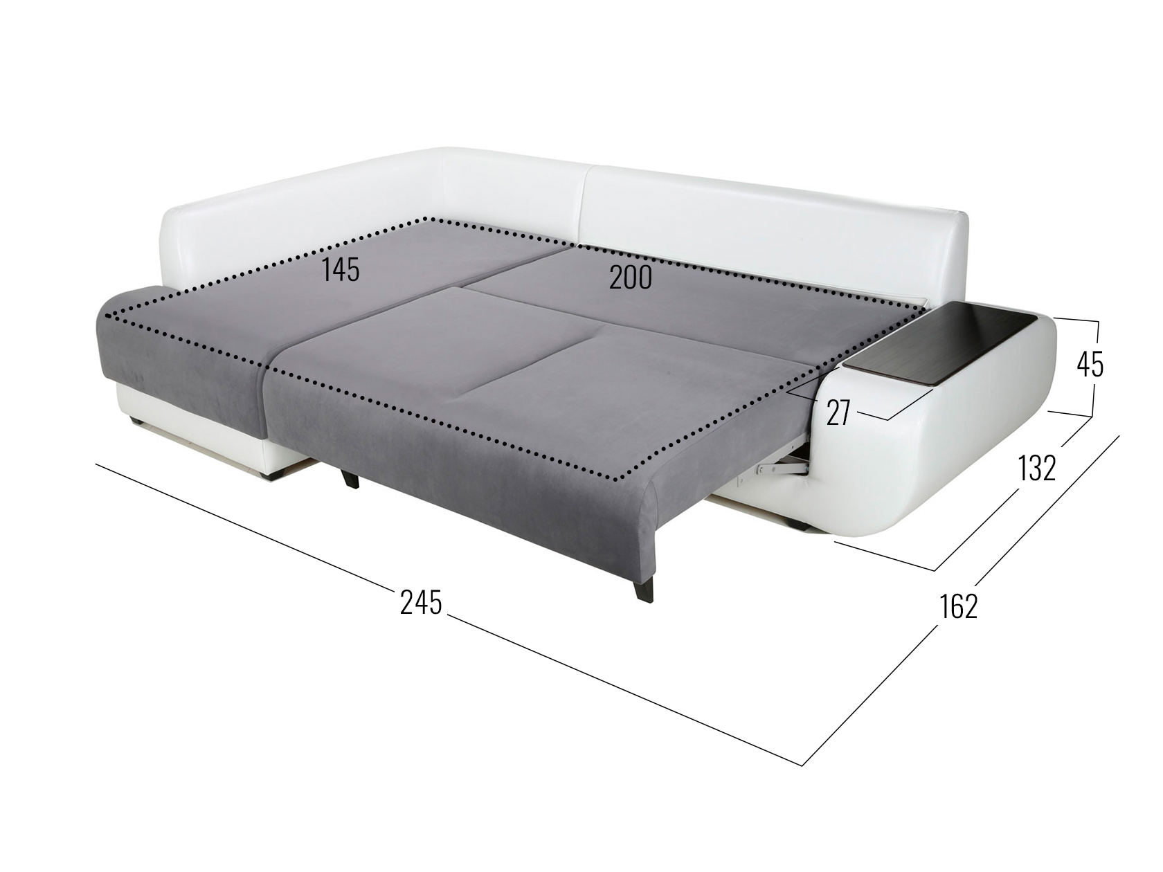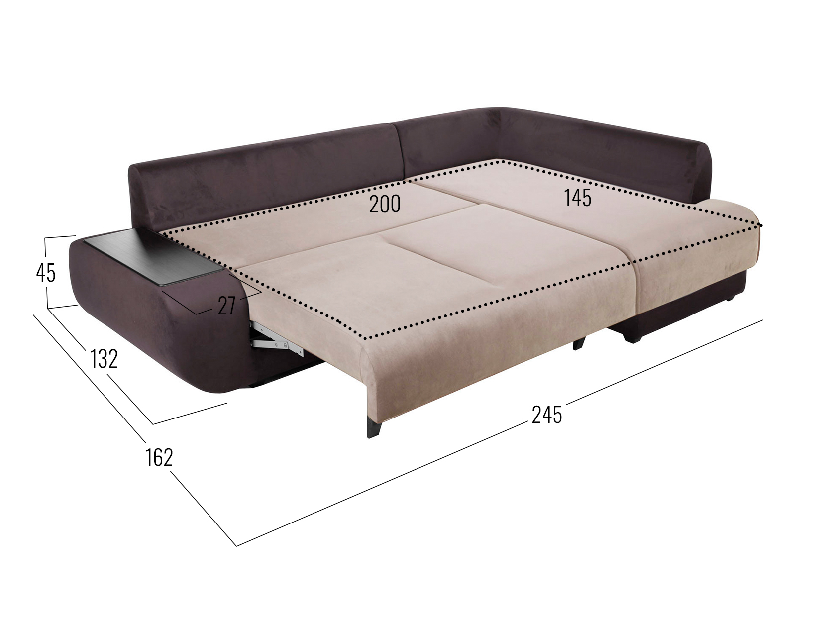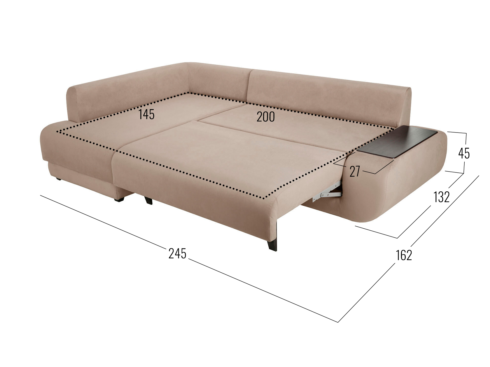 Размер ниши в подлокотнике (ВхШхГ): 21 х 58 х 20 см.