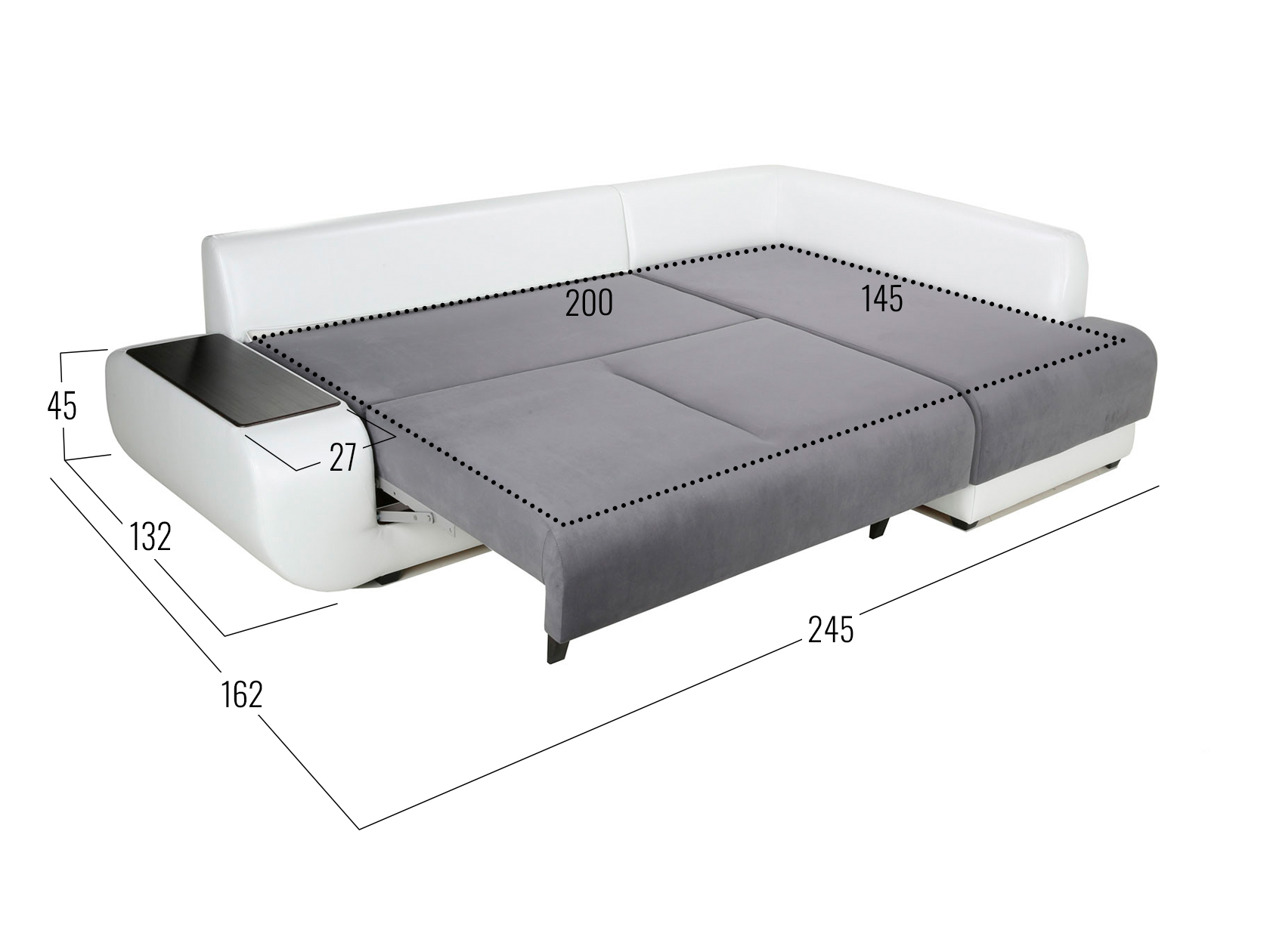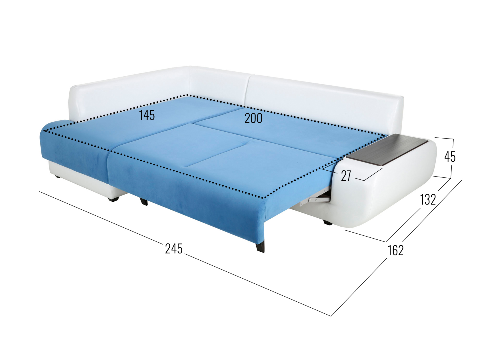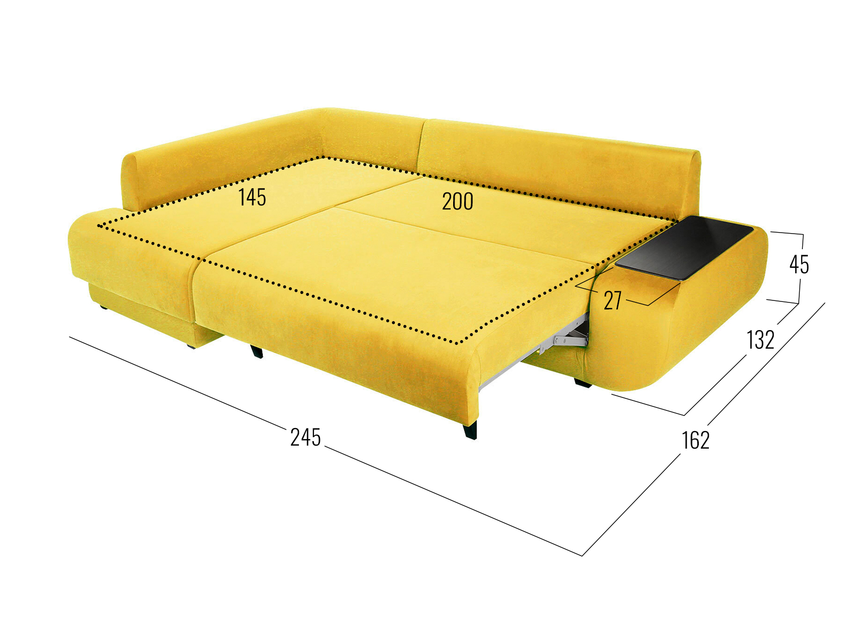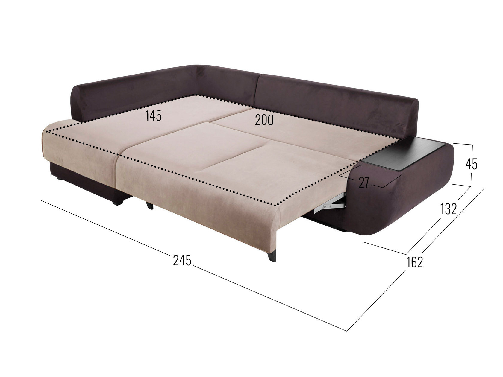 Размер ниши в подлокотнике (ВхШхГ): 21 х 58 х 20 см.