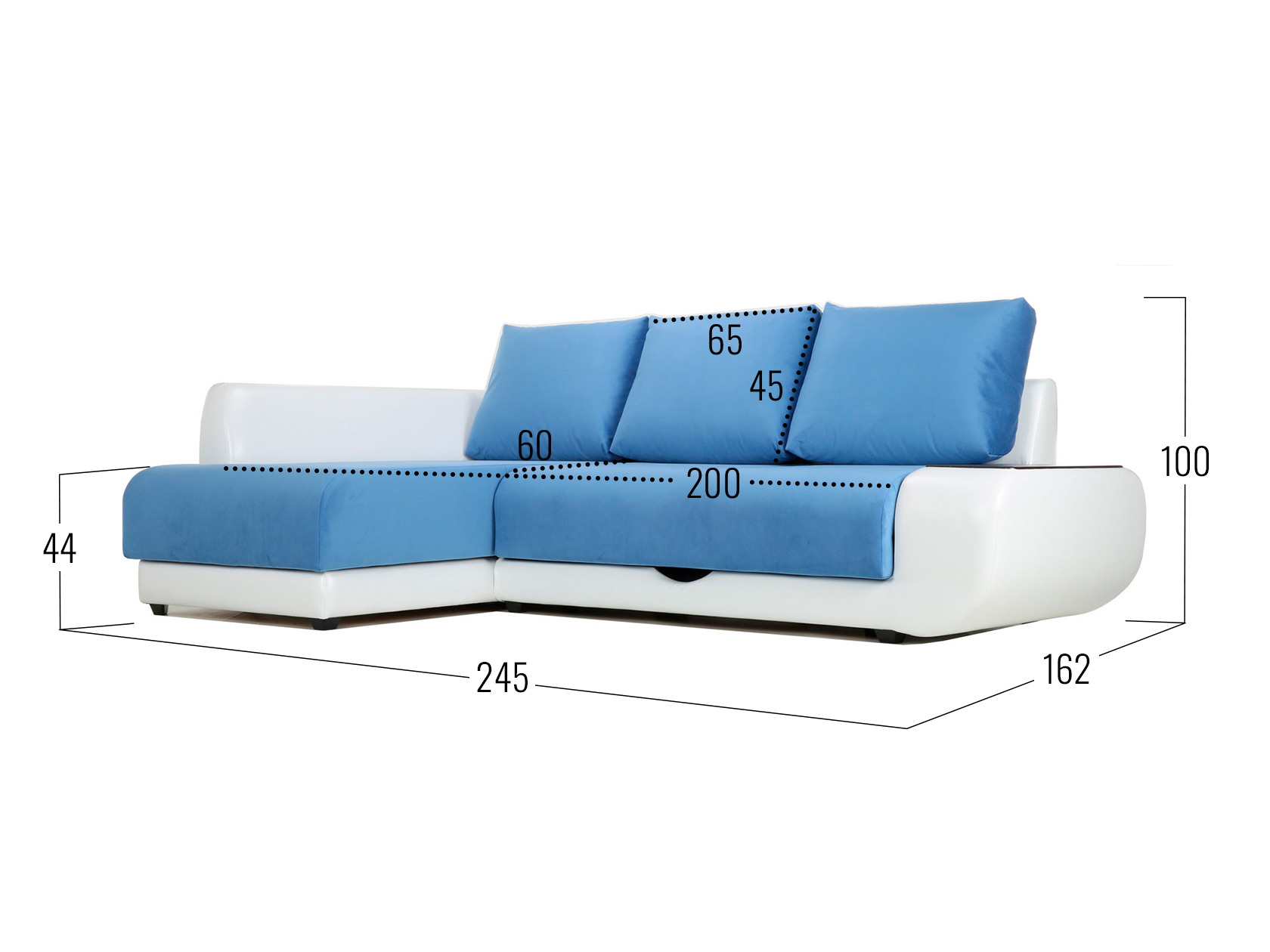 Синий, велюр / Без бара / Слева / Независимый пружинный блок