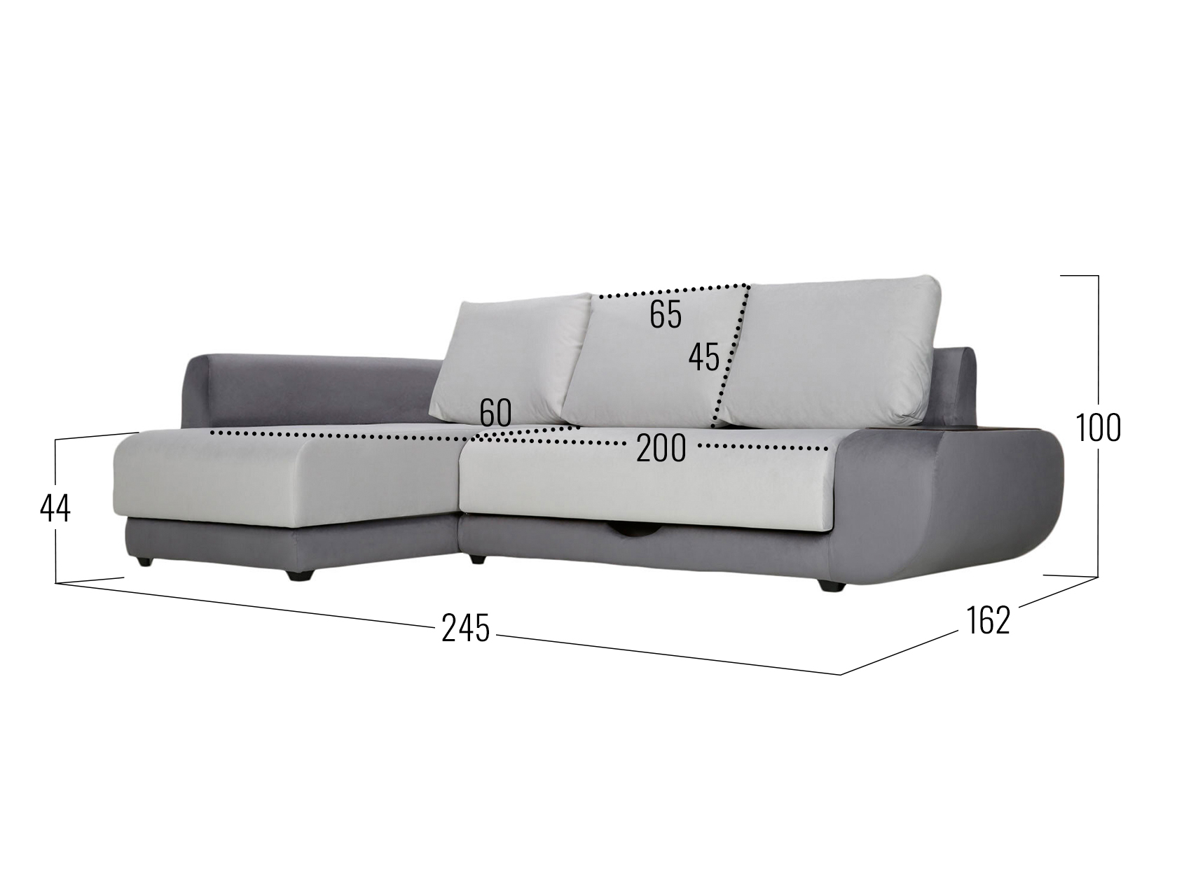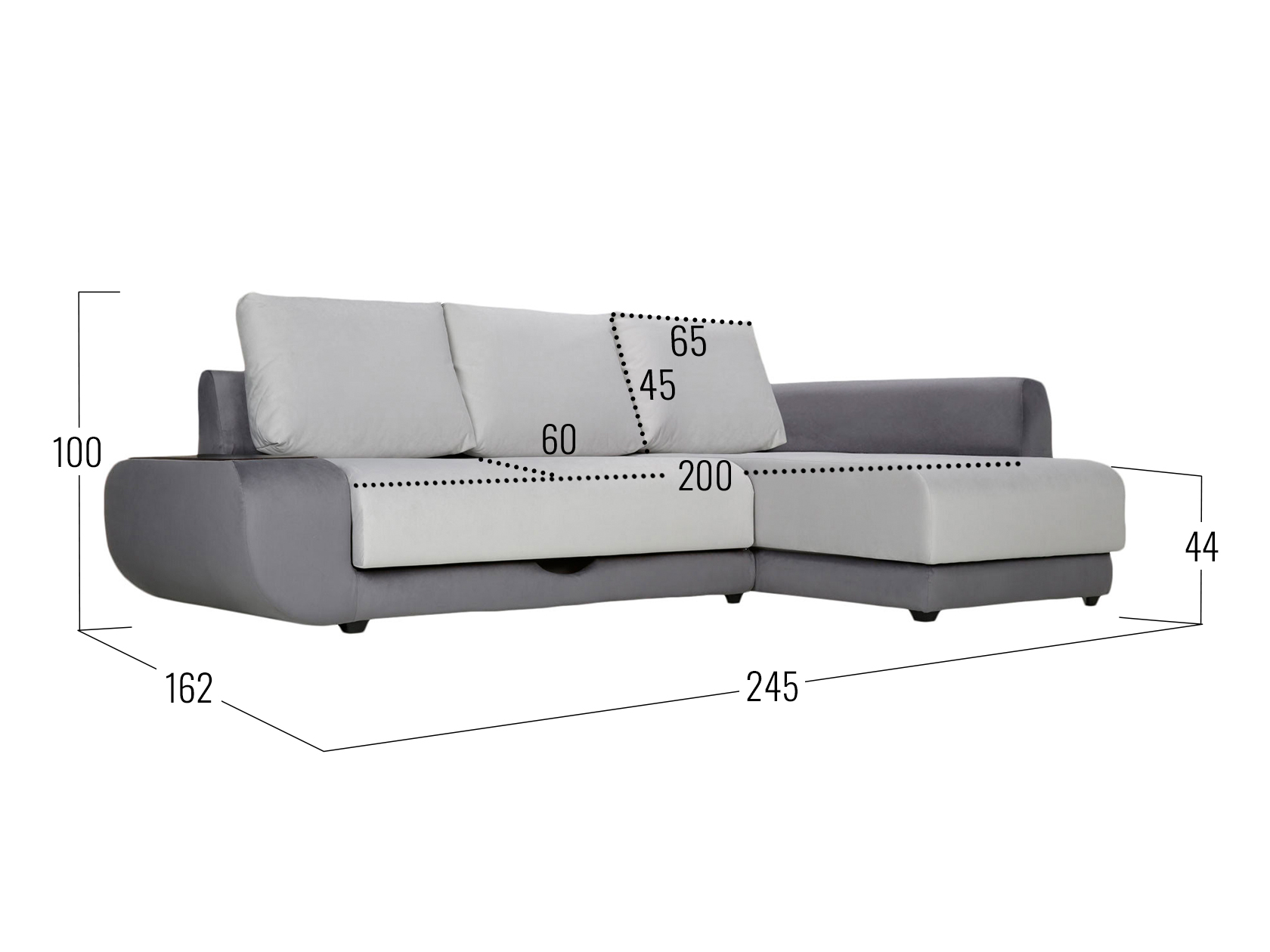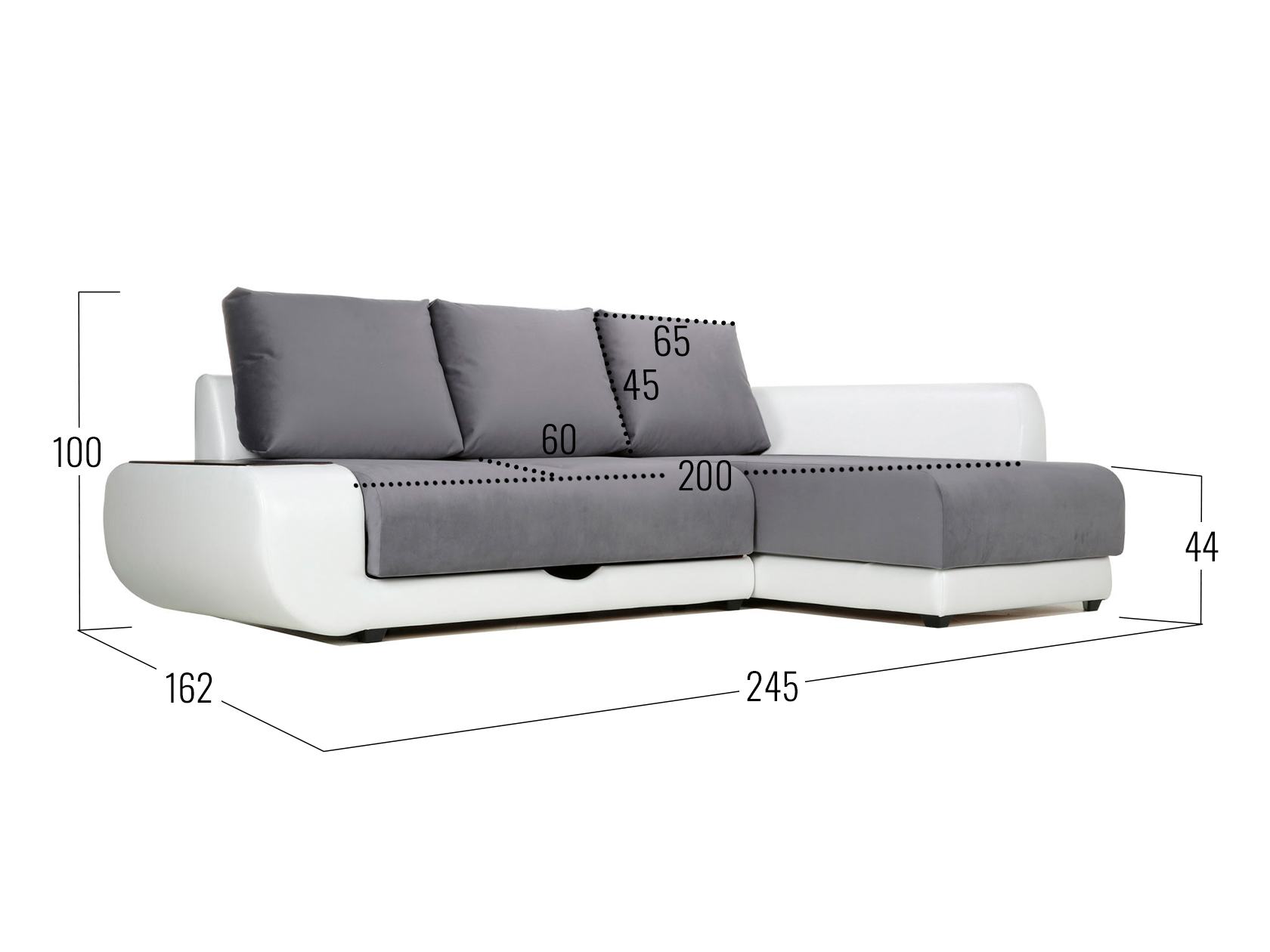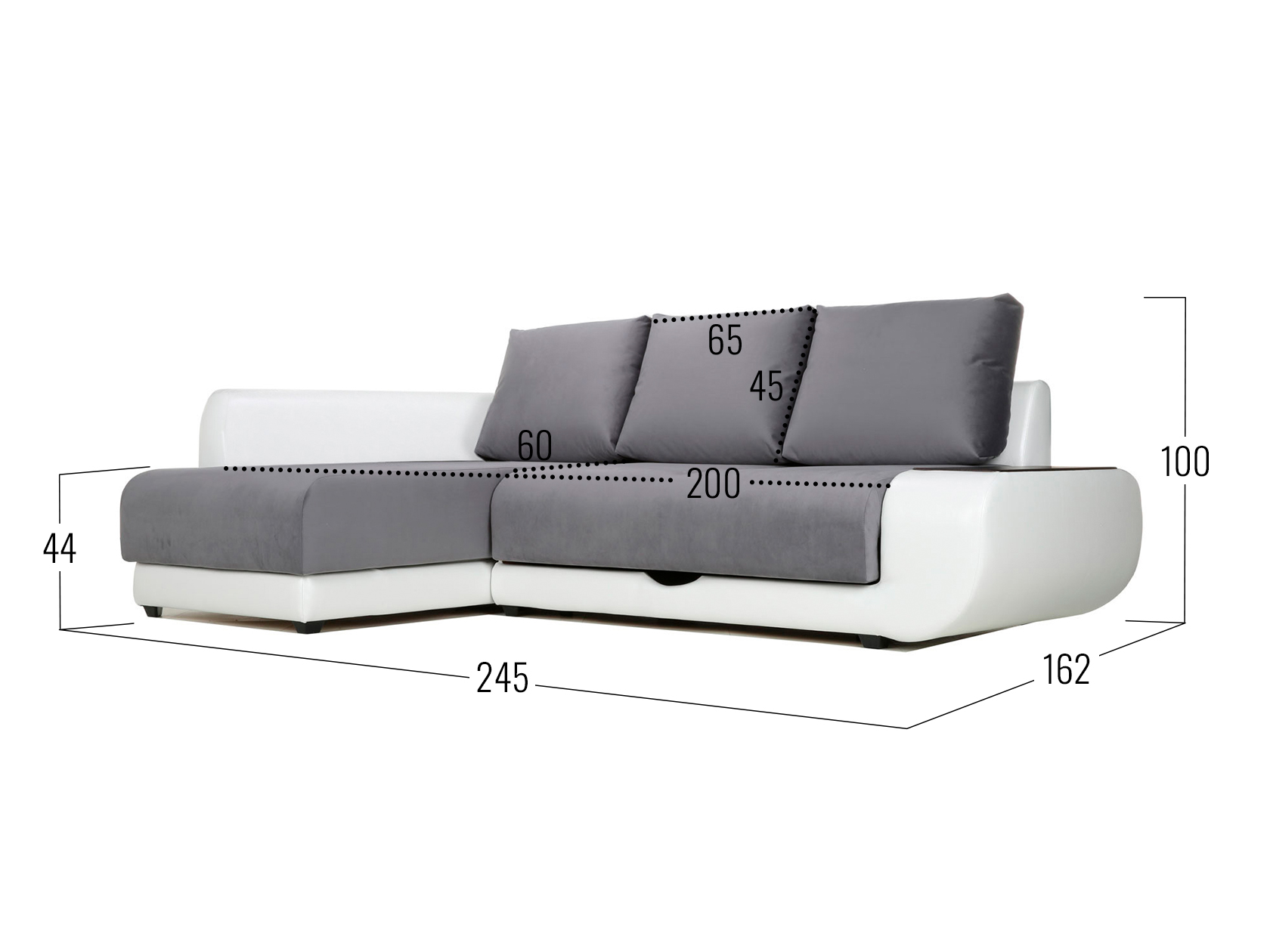 Графитово-белый, велюр/кожзам / С баром / Слева / Пенополиуретан