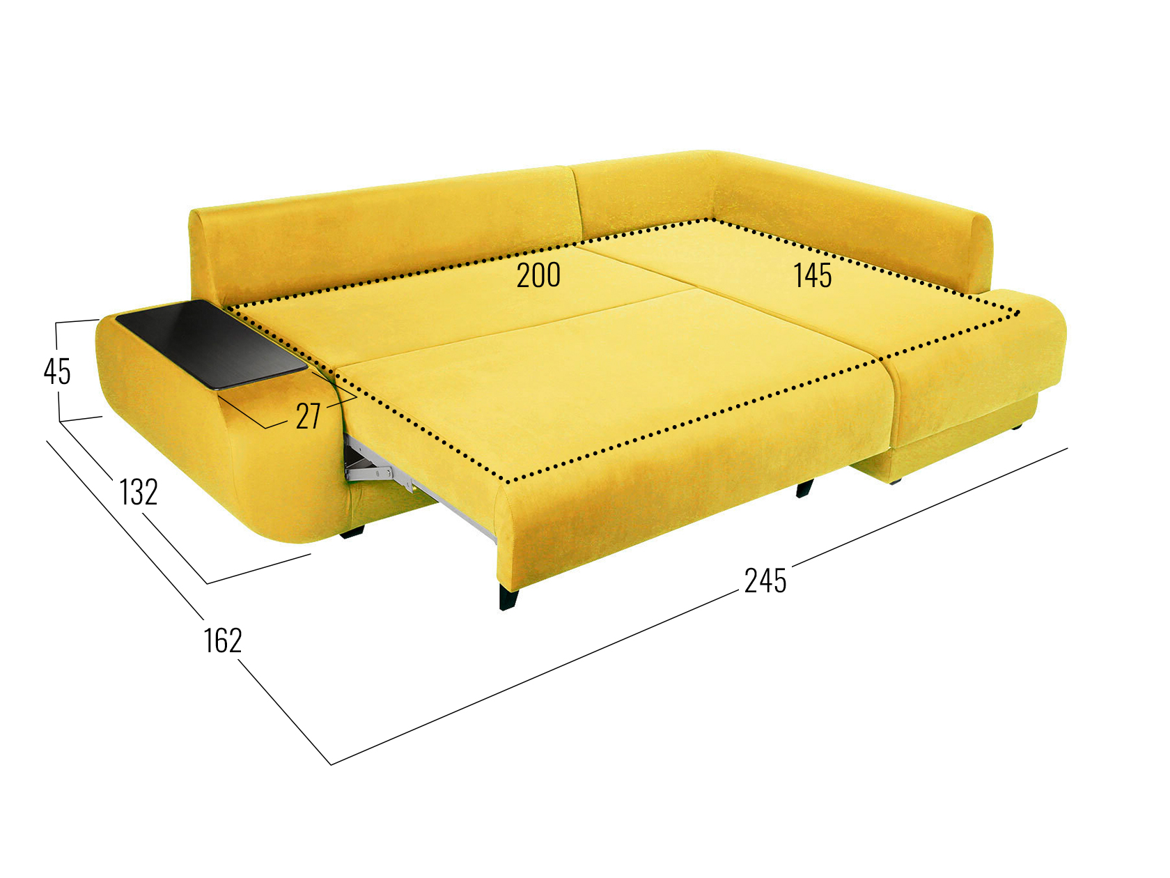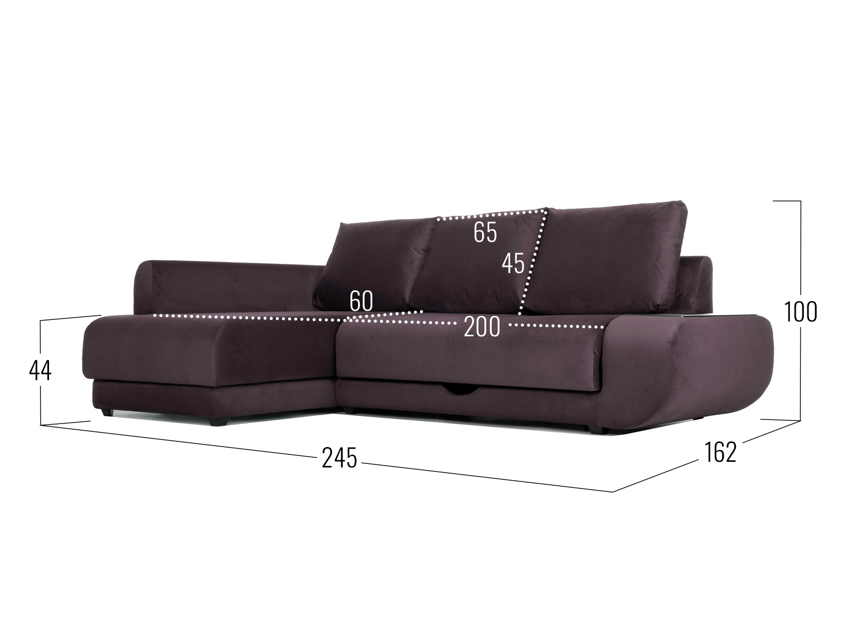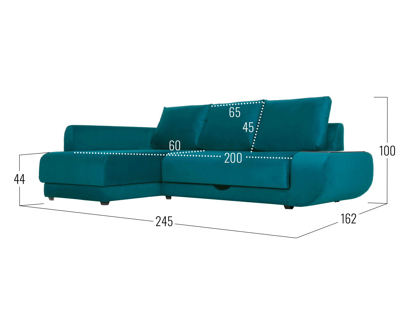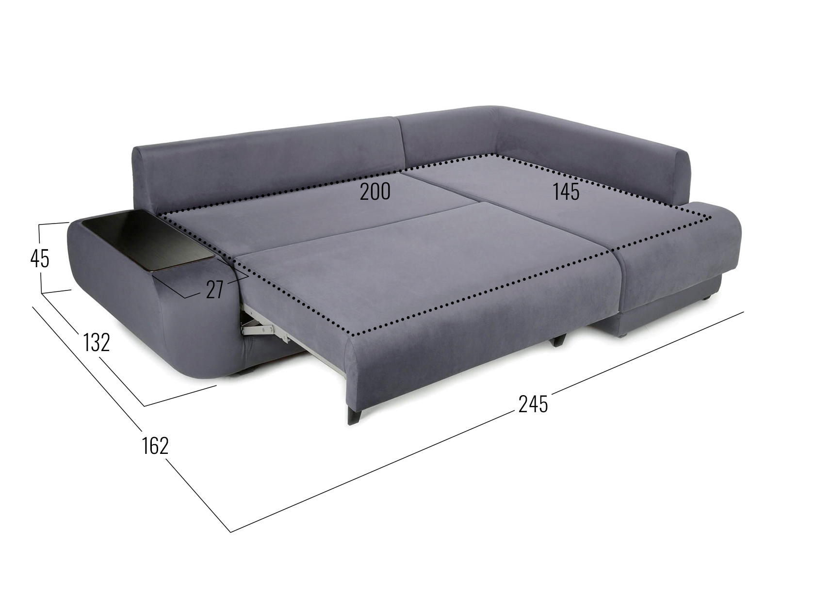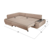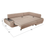 Удлиненный подлокотник с одной стороны дивана создает дополнительный комфорт, а широкий подлокотник с другой — служит практичным столиком. Угловая часть с ящиком для белья позволяет расположиться в положении полулежа. Комплектация «С баром» предусматривает нишу в подлокотнике для хранения разных мелочей. Задняя стенка обита тем же материалом, что и основная часть, поэтому модель прекрасно подойдет для помещений с открытой планировкой. В сложенном виде образуется спальное место для одного человека, а при необходимости диван легко трансформируется в полноценную кровать. При этом невысокая спинка защищает от соприкосновения со стеной во время сна.