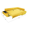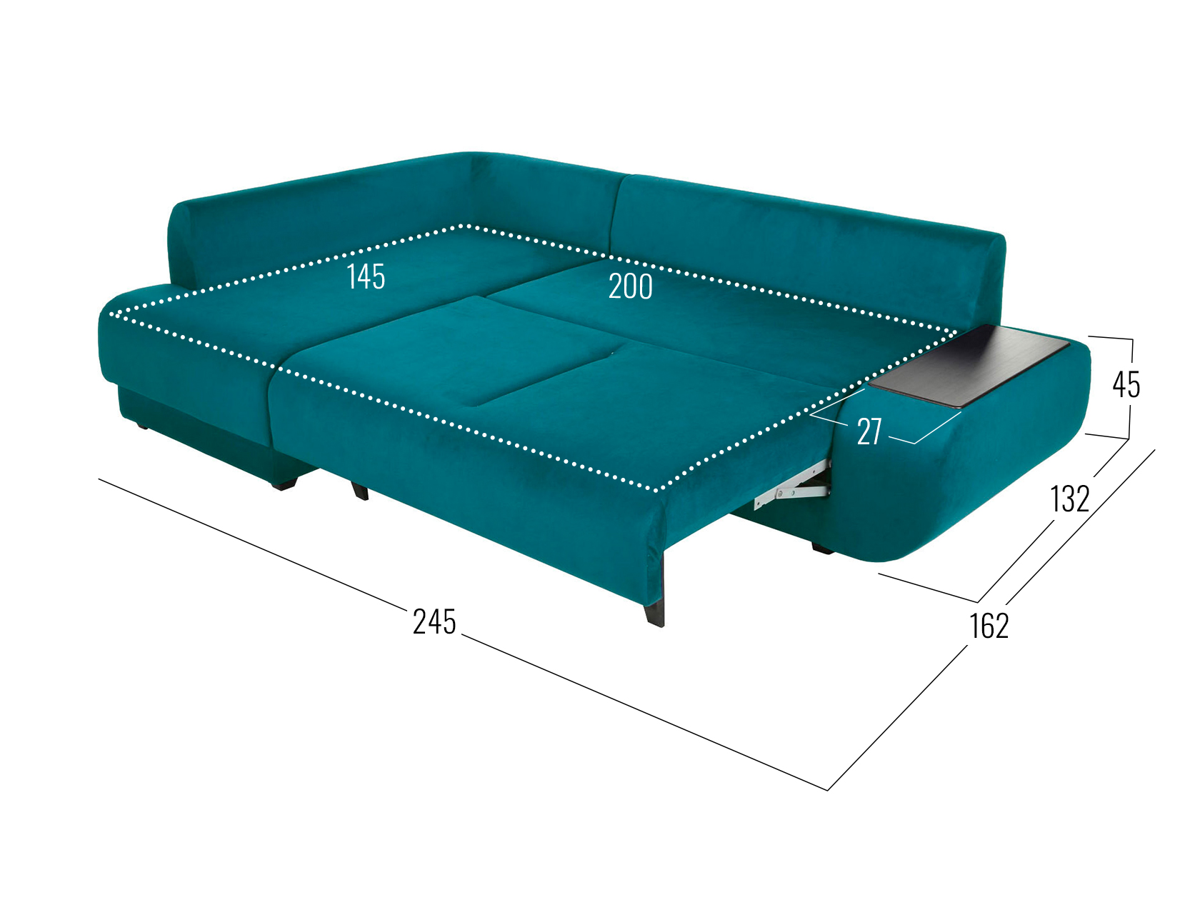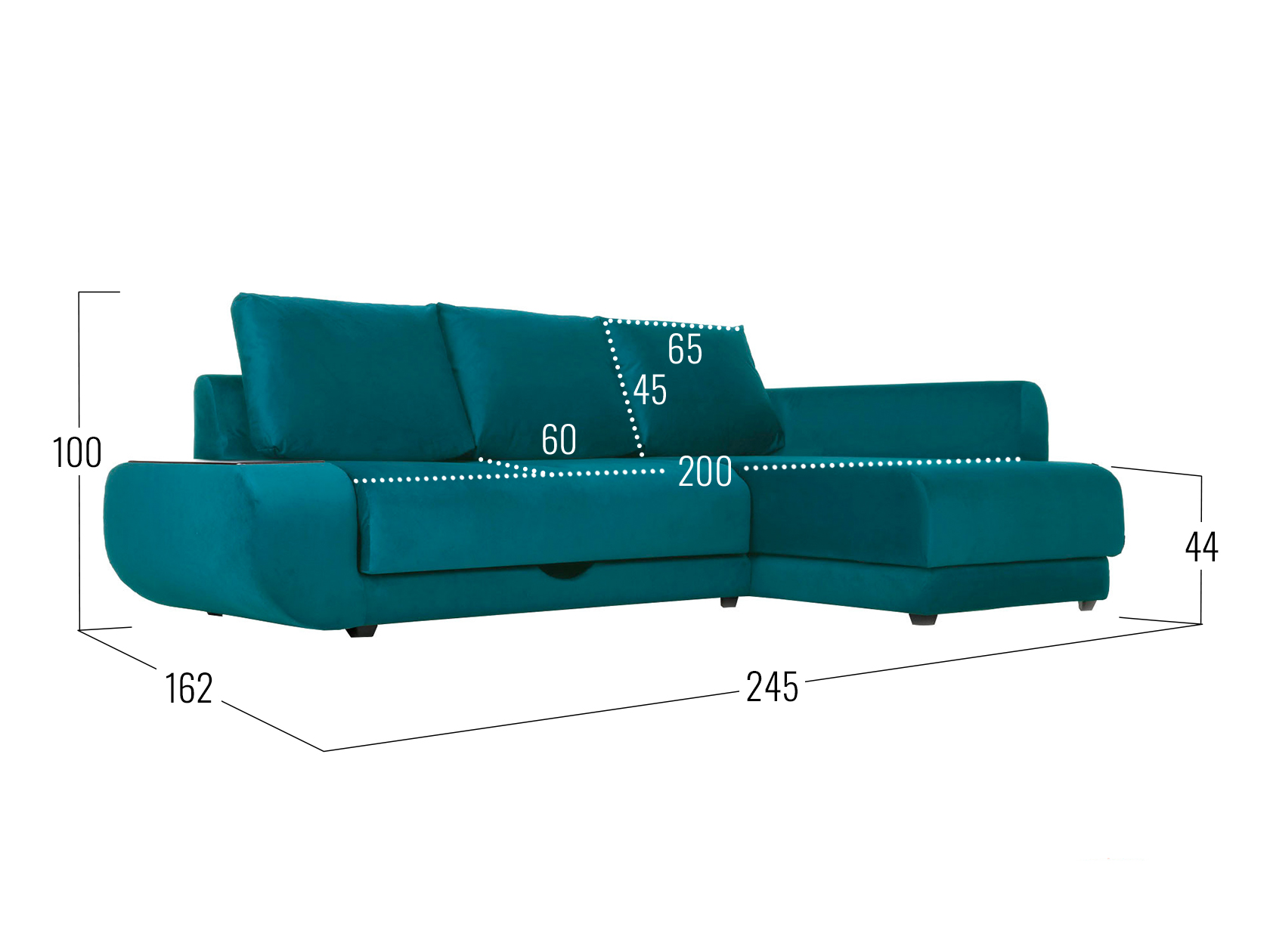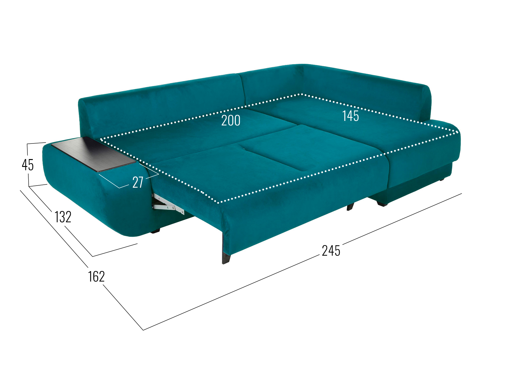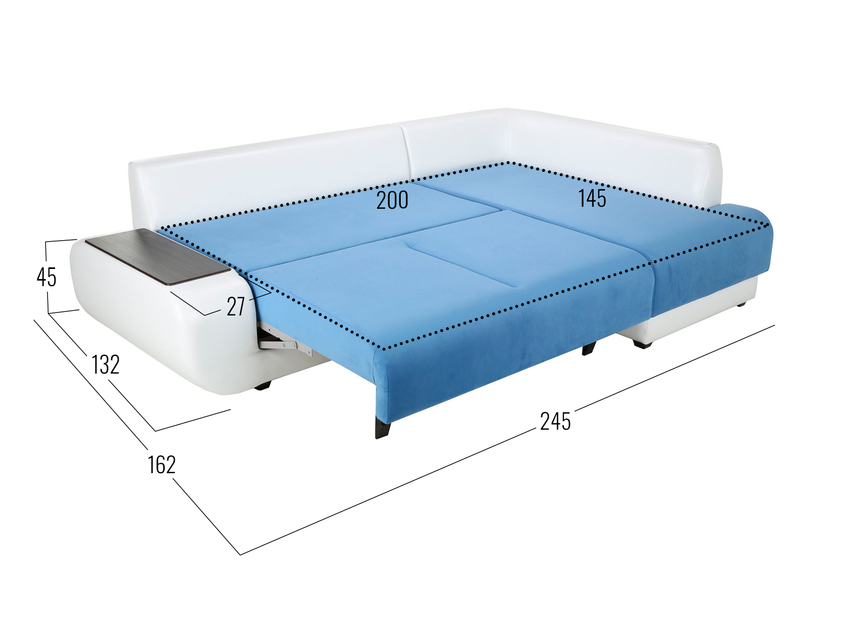 Удлиненный подлокотник с одной стороны дивана создает дополнительный комфорт, а широкий подлокотник с другой — служит практичным столиком. Угловая часть с ящиком для белья позволяет расположиться в положении полулежа. Комплектация «С баром» предусматривает нишу в подлокотнике для хранения разных мелочей. Задняя стенка обита тем же материалом, что и основная часть, поэтому модель прекрасно подойдет для помещений с открытой планировкой. В сложенном виде образуется спальное место для одного человека, а при необходимости диван легко трансформируется в полноценную кровать. При этом невысокая спинка защищает от соприкосновения со стеной во время сна.