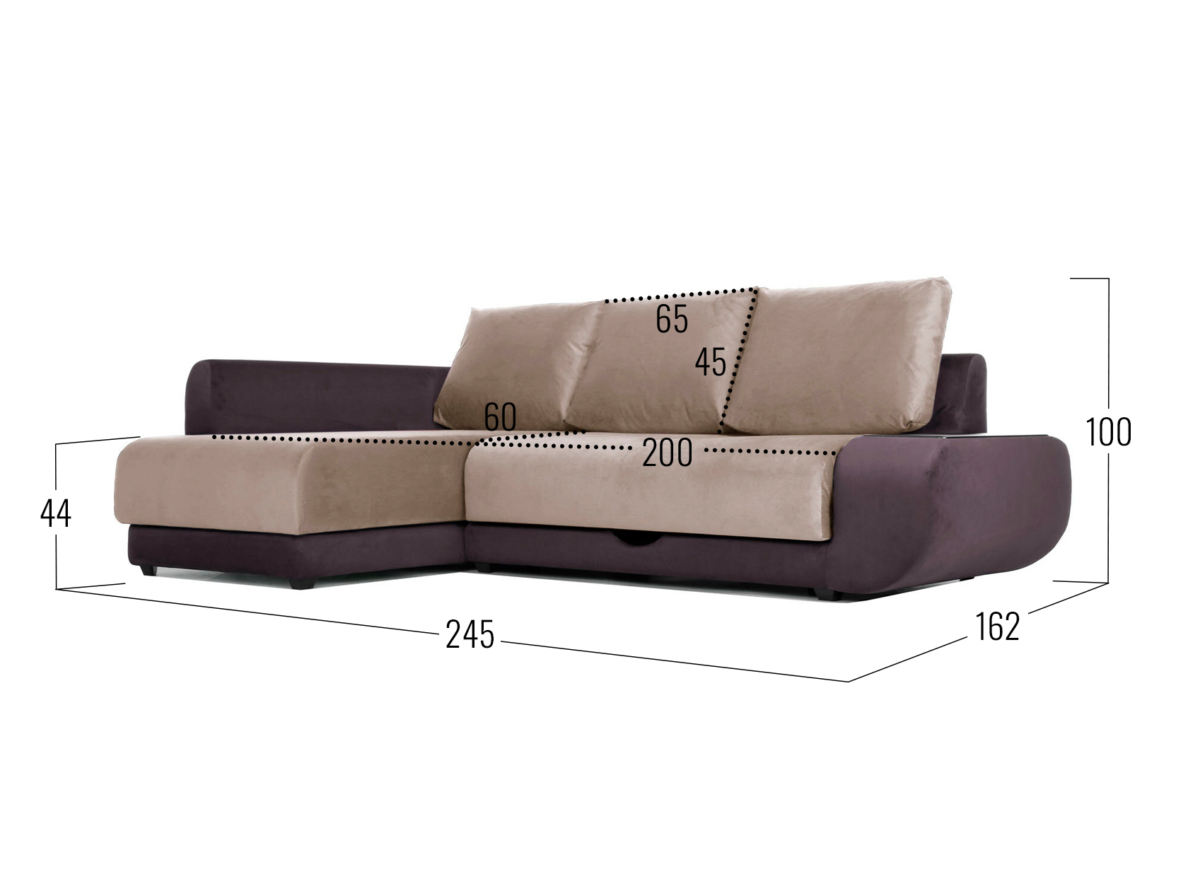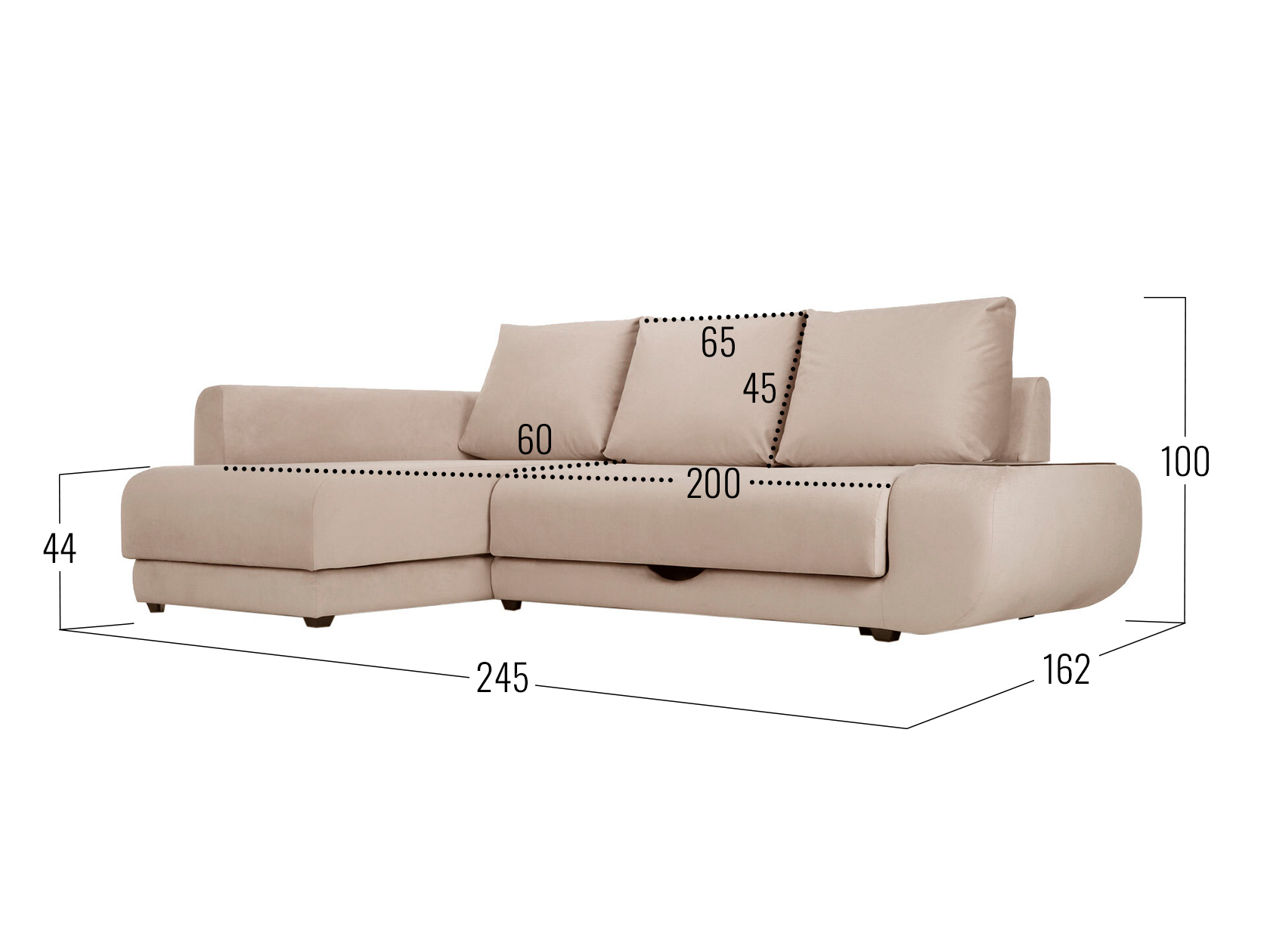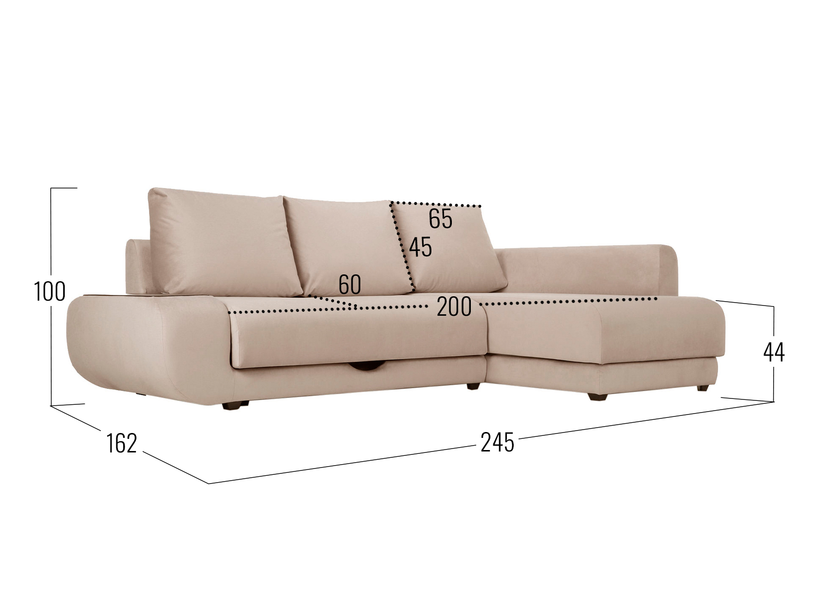 Бежевый, велюр / С баром / Слева / Пенополиуретан