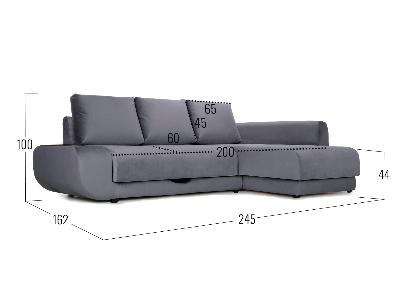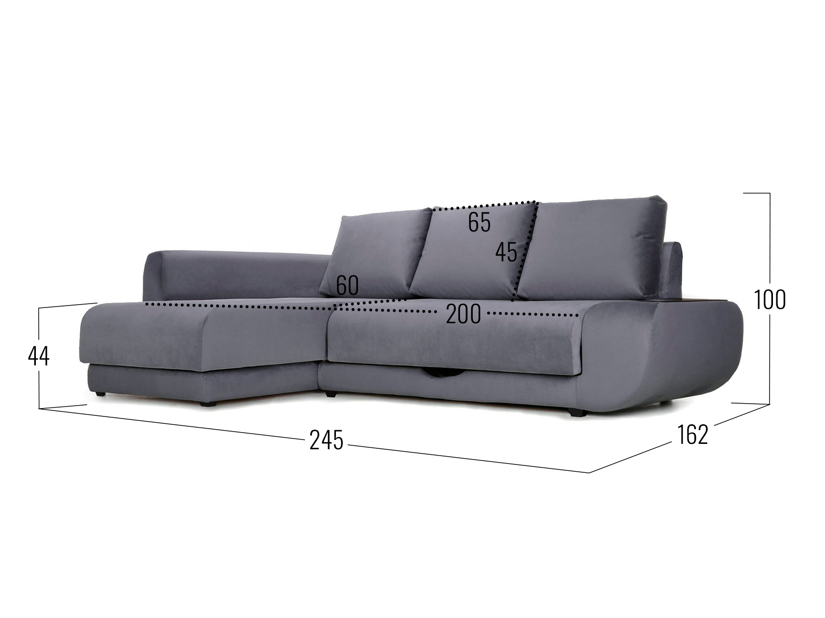 С баром / Слева / Пенополиуретан / Графитово-серый, велюр