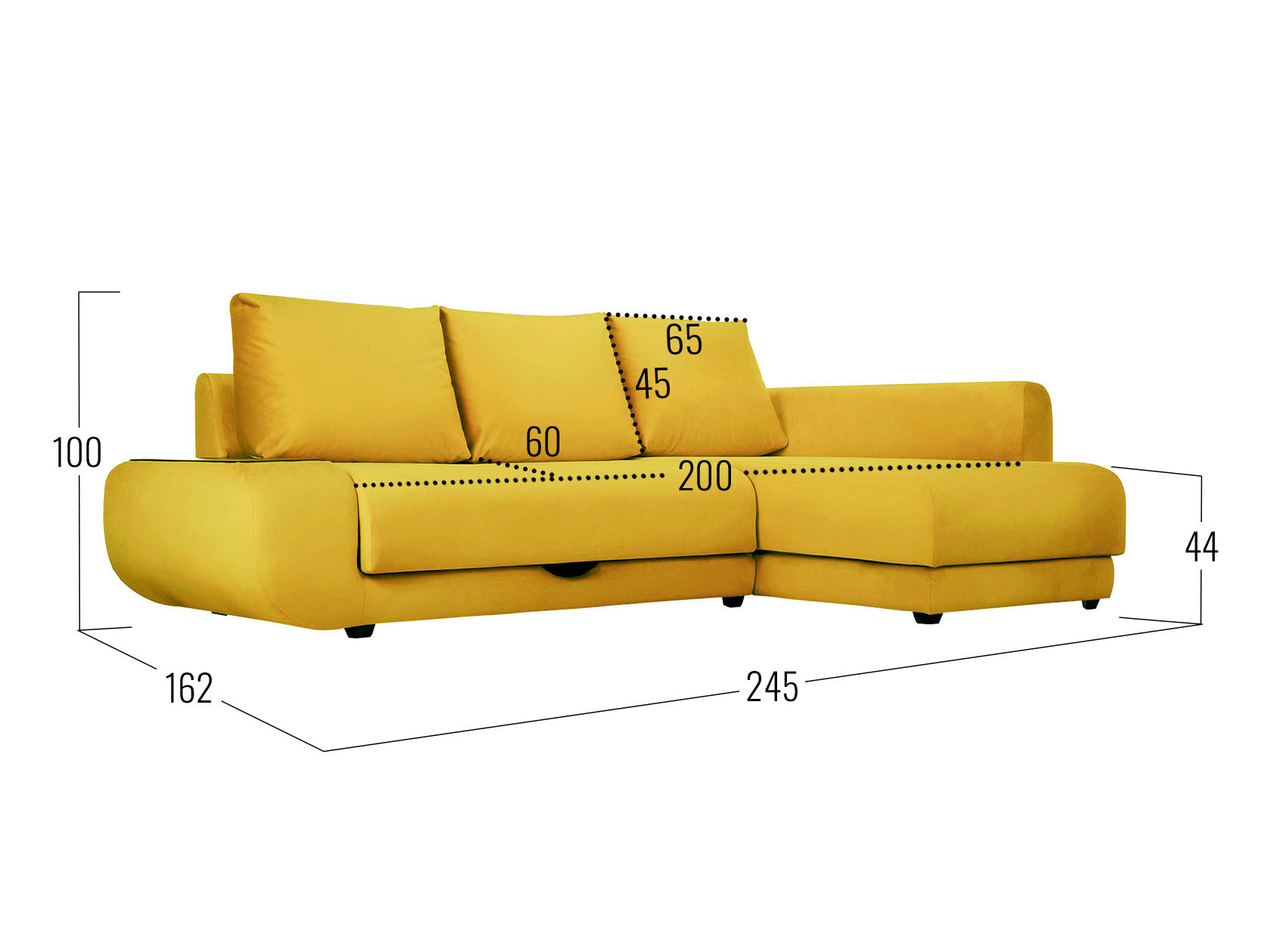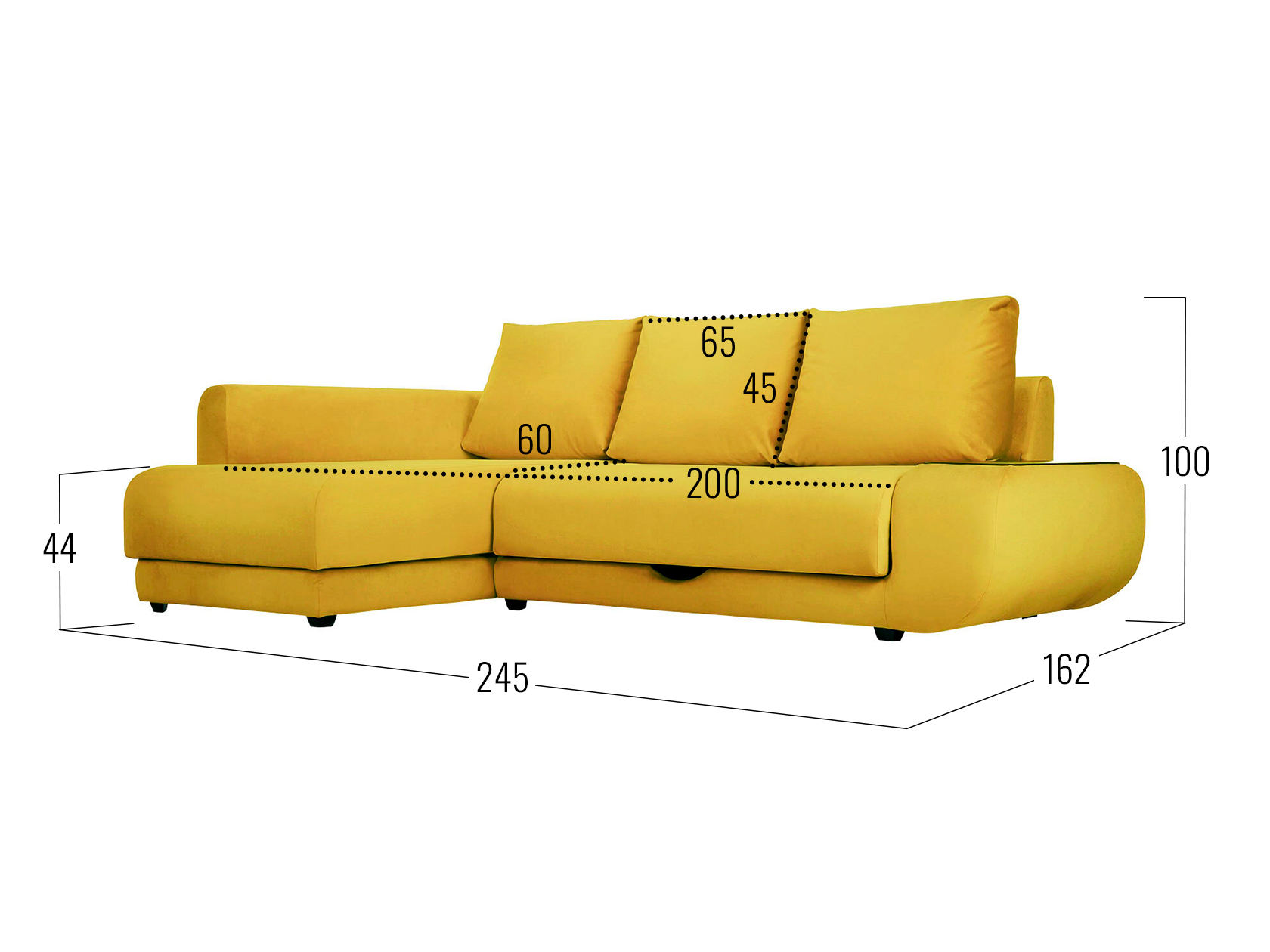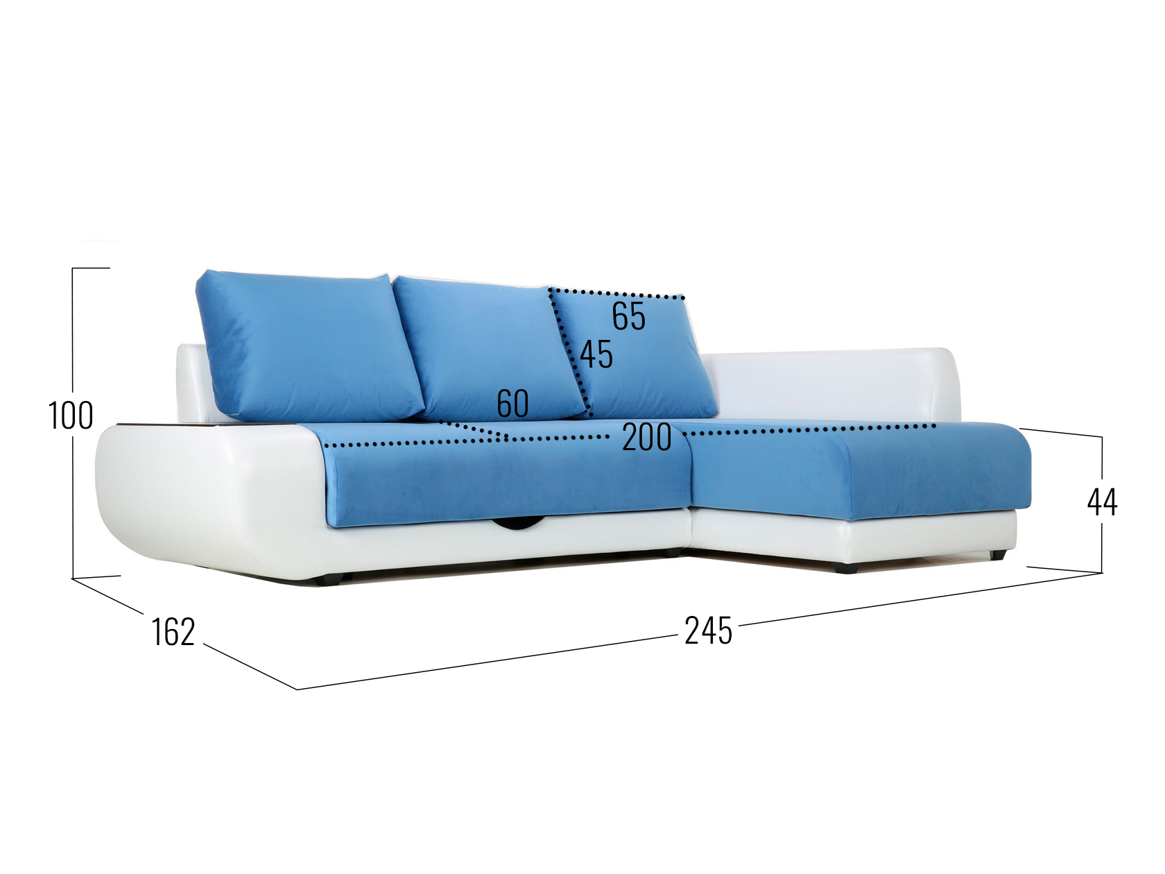 Посадочное место без подушек (ШхГ): 200 х 80 см.