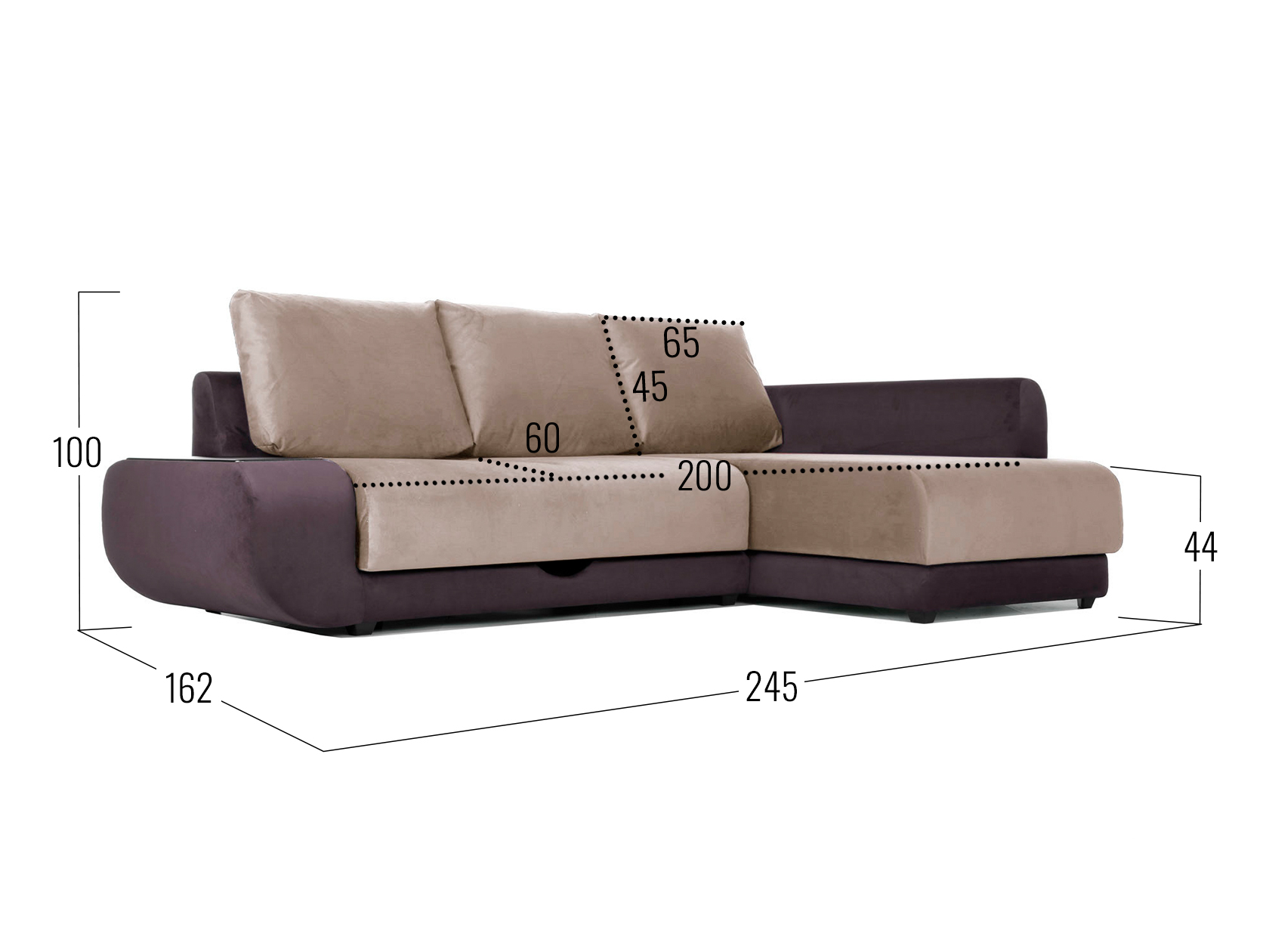 Шоколад, велюр / С баром / Справа / Независимый пружинный блок