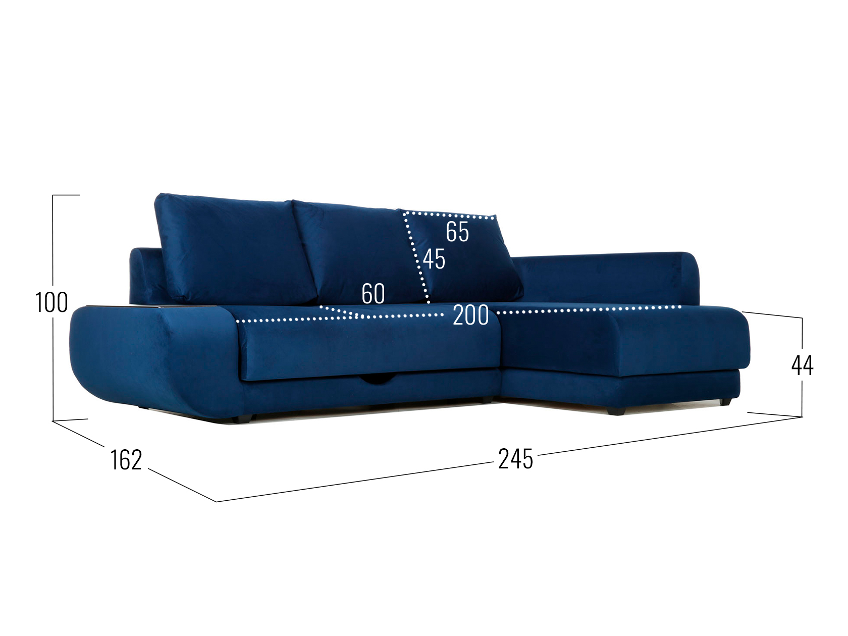 Синий, велюр / С баром / Справа / Пенополиуретан
