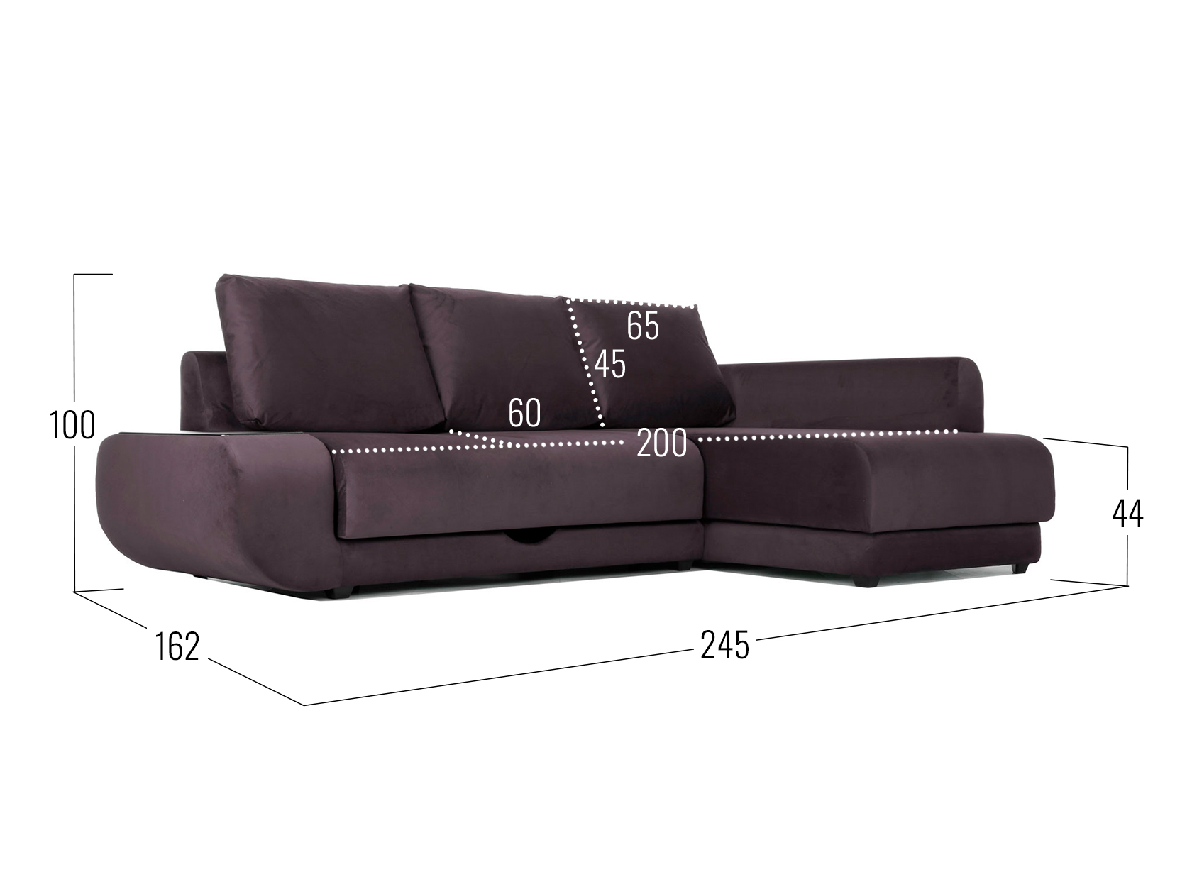 Шоколад, велюр / С баром / Справа / Пенополиуретан
