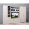 Фасады с фрезеровкой и акцентными ручками подчеркивают утонченный стиль интерьера. Стеклянные витрины позволяют продемонстрировать коллекцию книг или посуды, а также декор и всё то, что придает обстановке индивидуальность. Распашные шкафы и просторная тумба обеспечат место для предметов гардероба, белья и аксессуаров.