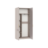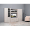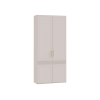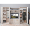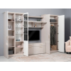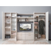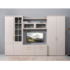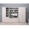Фасады с фрезеровкой и акцентными ручками подчеркивают утонченный стиль интерьера. Стеклянные витрины позволяют продемонстрировать коллекцию книг или посуды, а также декор и всё то, что придает обстановке индивидуальность. Распашные шкафы и просторная тумба обеспечат место для предметов гардероба, белья и аксессуаров.