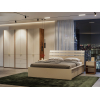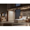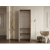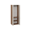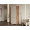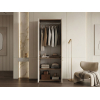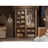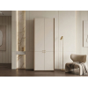 Внутреннее пространство разделено на отделения со штангой и полками. Элегантный дизайн создает легкий и визуально приятный облик мебели. Цилиндрические ручки в золотом оттенке добавляют пространству нотки стиля и индивидуальности.