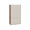 Вместительная конструкция позволит распределить одежду любой длины и аккуратно сложить повседневные предметы гардероба. Сочетание текстуры дерева с матовыми фасадами и золотой фурнитурой дает возможность органично интегрировать модель в современный интерьер.