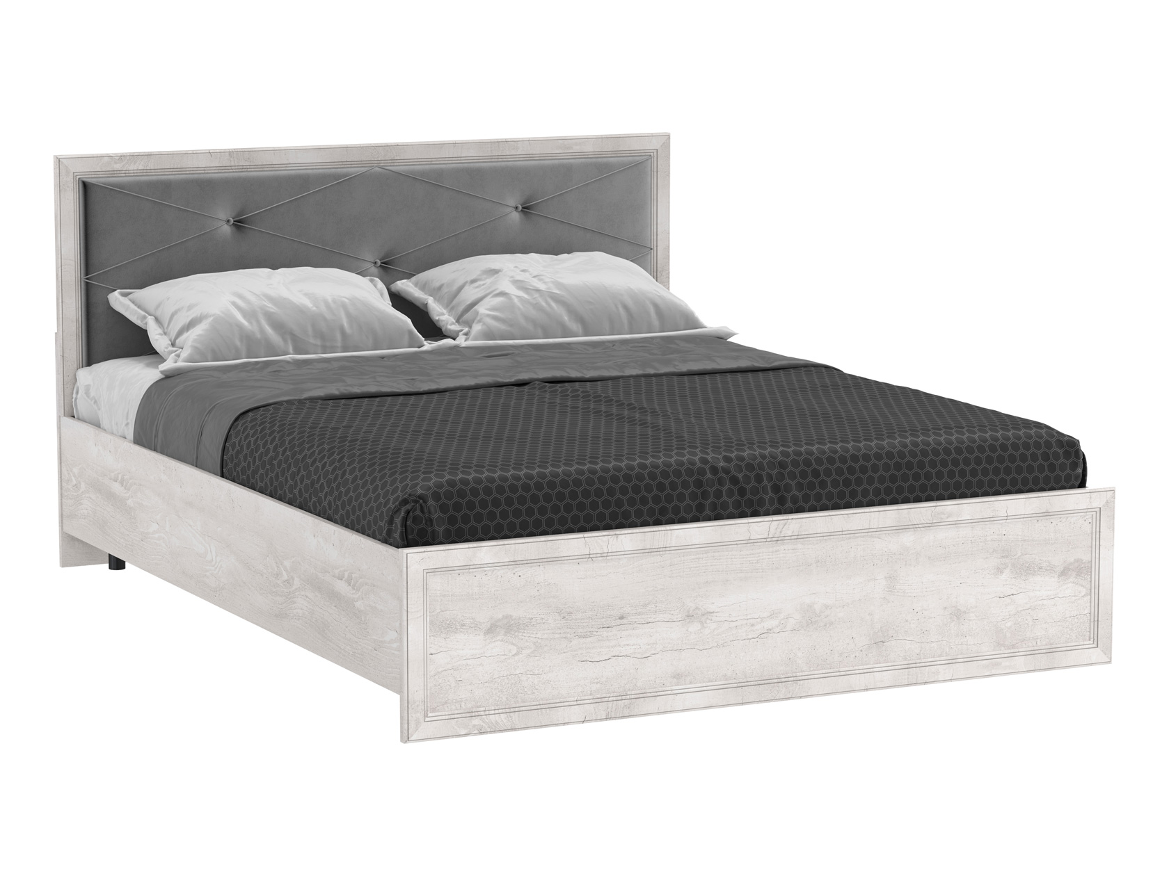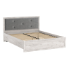 Классический силуэт дополнен мягким изголовьем с декоративной стяжкой. Фактура дерева в отделке создает уютные акценты интерьера. Комплектация с подъемным механизмом обеспечивает быстрый доступ к постельным принадлежностям, которые хранятся в коробе для белья.