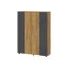 Внутреннее наполнение включает полки для сложенных вещей и секцию с продольной штангой для вешалок. Антресольная ниша позволяет разместить сезонные вещи и объемные коробки. Вставки с геометрической фрезеровкой добавляют обстановке динамики, а текстура под дерево создает ощущение теплоты.