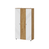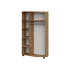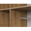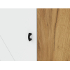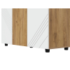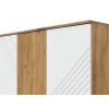 За глухими дверцами скрыты вместительная секция со штангой для вешалок и полки для хранения сезонных вещей. Фасады украшены фрезеровкой в виде геометрического узора, что придает обстановке динамичности. Небольшие ножки делают мебель устойчивой на полу с перепадами высоты.