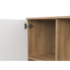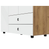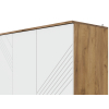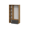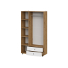 Разноплановое наполнение позволяет распределить одежду по категориям и легко поддерживать порядок в комнате. Матовые фасады с фрезеровкой удачно сочетаются с текстурой дерева. Небольшие опоры обеспечивают мебели устойчивость на полу с неровностями.