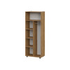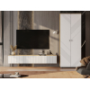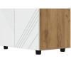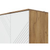 Ниша со штангой позволяет аккуратно разместить одежду на вешалках, а удобные полки помогают хранить белье, коробки, повседневные и сезонные вещи. Матовые фасады украшены фрезеровкой в виде геометрического узора. Текстура дерева наполняет обстановку теплом и уютом.