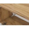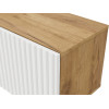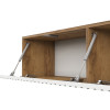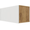 Откидная дверца фиксируется в открытом положении, организуя быстрый доступ к содержимому. Конструкция поделена на три секции, которые подходят для хранения различных мелочей. Матовые фасады с вертикальной фрезеровкой дополняют современный интерьер и не требуют сложного ухода.