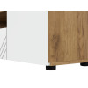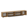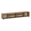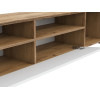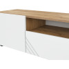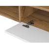 За глухими фасадами можно хранить зарядки, пульты, гаджеты и прочие сопутствующие мелочи. В открытых нишах удобно разместить печатную продукцию. Фасады с фрезеровкой и мягкий древесный оттенок добавят обстановке уютный акцент.