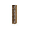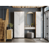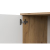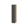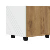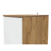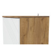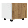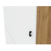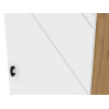 Пространство внутри представлено полками для удобного размещения одежды, белья и аксессуаров. Фасад с декоративной фрезеровкой в виде наклонных линий сочетается с текстурой дерева. Такой дизайн подчеркивает современный облик мебели.