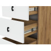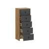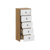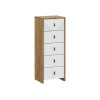 Высокая модель с пятью выдвижными ящиками идеально подойдет для небольшого пространства. Верхний фасад украшен фрезеровкой. Лаконичные ручки подчеркивают современный дизайн мебели. Древесная текстура добавляет обстановке нотки теплоты и уюта.